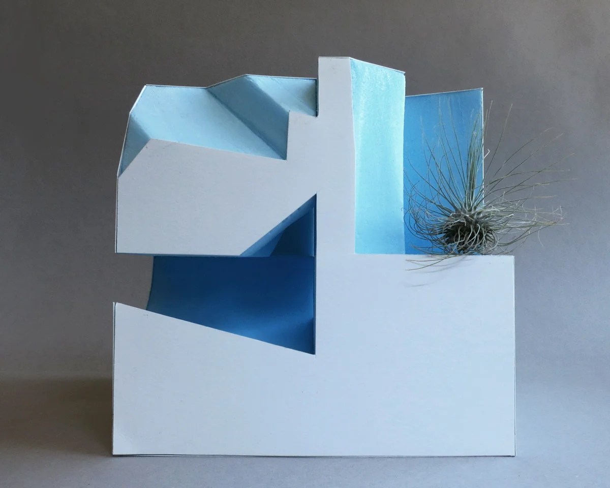 This study explores the modularity of form, ruled surfaces both in CAD and in physical practice with foam blocks, as well as exploration in 3D representation of form in architectural drawings. We started the project by individually cutting eight 3.5" cubes with ruled surfaces in Rhino. We then created the physical cubes by using Bristol sleeves and a hot wire cutter. We later assembled the eight cubes together into one cube and created drawings of the result.